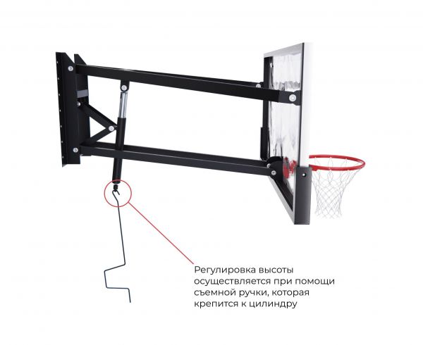 | Система регулировки высоты кольца (180–305 см) и выноса щита (98–116 см) позволяет адаптировать баскетбольный щит для игроков разного возраста и уровня подготовки. | |