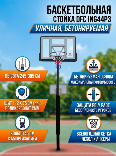 Баскетбольная стационарная стойка DFC ING44P3 - Описание