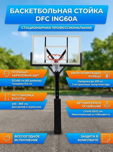 Баскетбольная стационарная стойка DFC ING60A - Описание