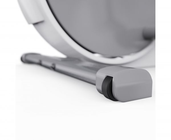 Одним из ключевых преимуществ тренажёра является его складная конструкция. Это особенно удобно для использования в квартирах или небольших помещениях. Такой компактный эллиптический тренажёр впишется даже в ограниченное пространство. Для удобного перемещения предусмотрены транспортировочные ролики, а компенсаторы пола позволяют установить тренажёр ровно даже на неровной поверхности.