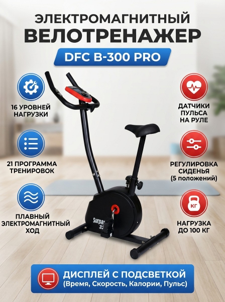 DFC B-300 PRO - это велотренажер для эффективной тренировки дома. Он представляет собой компактный и удобный тренажер, который поможет улучшить состояние сердечно-сосудистой и дыхательной систем. Он является идеальным выбором для тех, кто стремится к здоровому образу жизни и физическому благополучию.