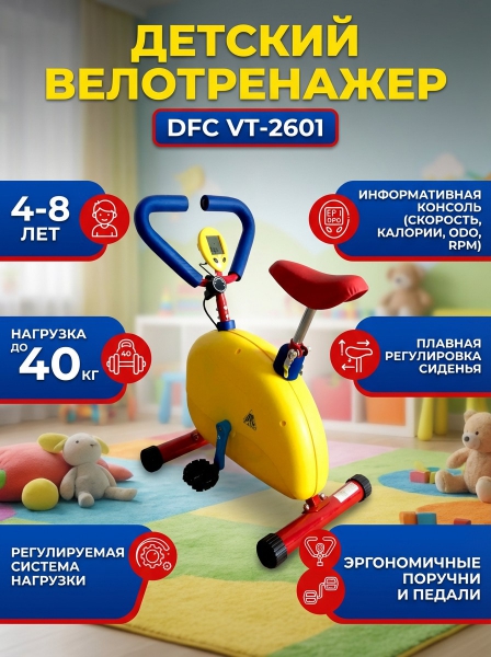 Детский механический велотренажер VT-2601 предназначен для детей в возрасте от 4 до 8 лет.