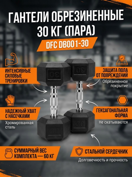 Гантели обрезиненные (пара) DFC DB001-30 - Характеристики