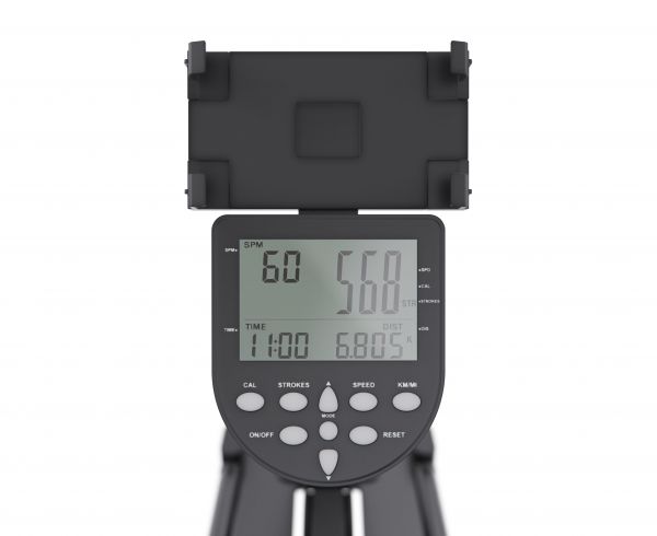 Тренажёр оснащён монохромным LCD-дисплеем, отображающим ключевые показатели тренировки — калории, дистанцию, скорость и общее количество гребков. Для расширения функционала предусмотрено подключение по Bluetooth к приложениям FITLOG и KINOMAP, что позволяет отслеживать прогресс и делать занятия более увлекательными. В комплект входят две батарейки типа AA, необходимые для работы дисплея.