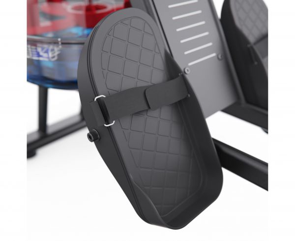 Рифленые педали с регулируемыми ремешками обеспечивают надежную фиксацию ног, а подставка под планшет позволяет использовать устройства для удобства во время тренировки. Также есть компенсаторы неровности пола, которые гарантируют стабильность тренажера, а транспортировочные ролики обеспечивают лёгкое и удобное перемещение, позволяя без труда менять его расположение в помещении.