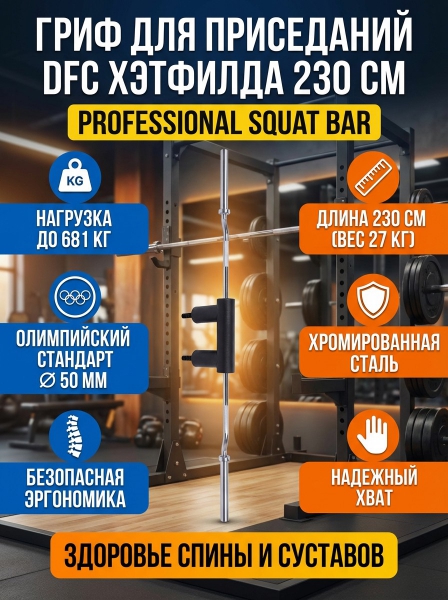Гриф для приседаний DFC 230 см д50 - Описание
