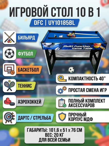 Игровой стол - трансформер DFC 40" 10 в 1 UY10185BL - Описание