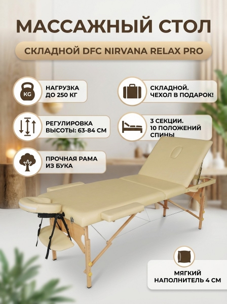 Отличным массажным столом для любительского и профессионального использования станет DFC NIRVANA RELAX PRO BEIGE.