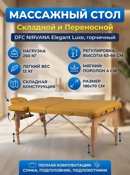 Массажный стол DFC Nirvana Elegant Luxe горчичный - Характеристики