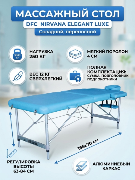 Массажный стол DFC Nirvana Elegant Luxe голубой - Характеристики