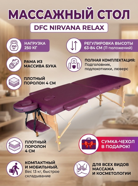 Массажный стол DFC Nirvana Relax сливовый - Описание