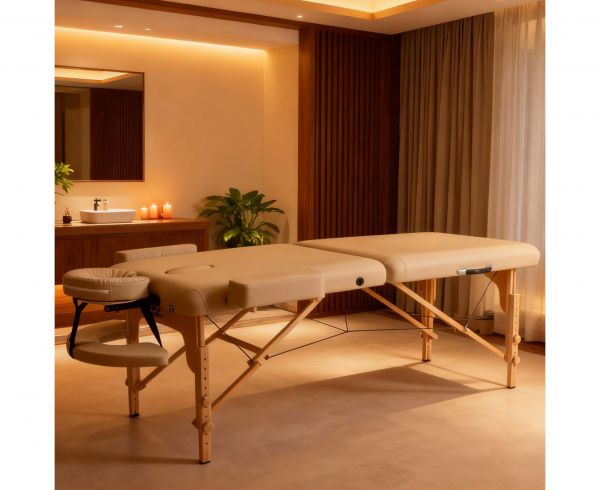 Массажный стол выполнен в цвете Camel — это тёплый и естественный оттенок, который придаёт изделию стильный и гармонично вписывается в интерьер дома или массажного кабинета.