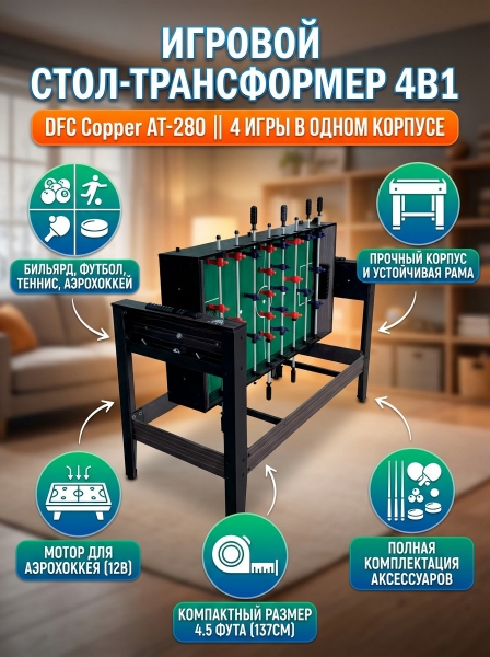 Игровой стол - трансформер DFC Copper AT-280 4 в 1 - Описание