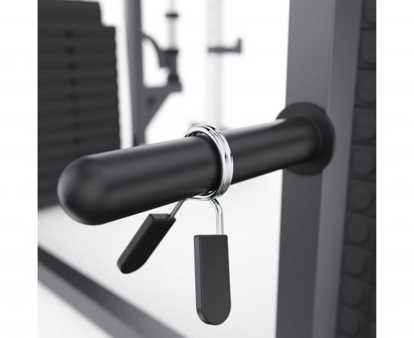 Встроенный гриф движется по направляющим с использованием блокировочного крюка и предохранителей, что гарантирует стабильность и исключает риск неконтролируемого падения веса. Контактная площадка диаметром 209 см повышает устойчивость тренажёра во время выполнения упражнений. Дополнительный держатель позволяет использовать обычный гриф для свободных упражнений. На стойках предусмотрены короткие и длинные предохранители, поручни, опорные элементы и система крепления, чтобы каждый пользователь мог настроить тренажёр под себя.