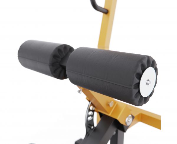 Сиденье размером 32 х 26 см регулируется по высоте в 5 положениях, что позволяет подстроить тренажер под индивидуальные особенности спортсмена. Для фиксации ног предусмотрены удобные валики длиной 21 см и диаметром 11 см, также с 5 уровнями регулировки. Валики изготовлены из плотной пены и покрыты износостойким полиуретаном, что обеспечивает комфорт и долговечность.