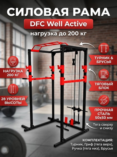 Рама силовая для тяги сверху и снизу DFC Well Active в ярком красно-черном цвете. Для данного оборудования используйте диски с отверстием 26 мм.