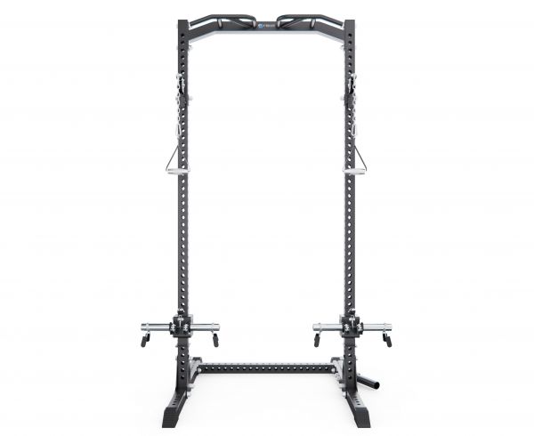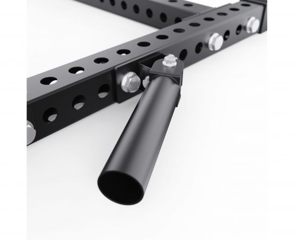 Конструкция рассчитана на максимальную нагрузку до 250 кг, что позволяет безопасно выполнять базовые и изолирующие упражнения. Рама оснащена 4 посадочными местами с посадочным диаметром 28 и 50 мм, обеспечивая совместимость с различными типами весовых дисков.