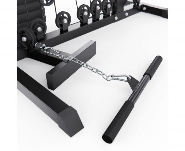 В конструкции предусмотрено 13 свободных блоков и 1 встроенный весовой блок весом 77 кг. Такая система позволяет гибко настраивать нагрузку по уровню физической подготовки — от начинающего до уверенного спортсмена. Силовой комплекс удобно использовать как для набора мышечной массы, так и для поддержания формы.