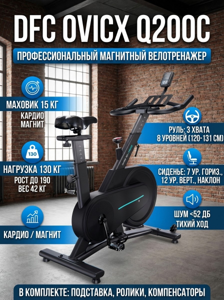 Маховик на 15 кг гарантирует плавное движение и настройку степени нагрузки. Кручение педалей в обе стороны вносит разнообразие в процесс тренировки. Обернутый вокруг маховика ремень обеспечивает уровень шума менее 52 Дб, что делает DFC OVICX Q200C оптимальным вариантом для использования дома.