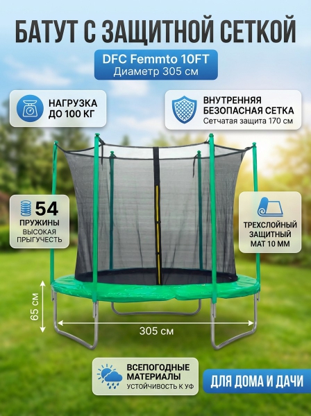 Батут с внутренней защитной сеткой DFC 10FT green - Доставка