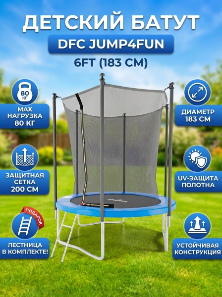 Батут с внутренней защитной сеткой DFC Trampoline STOCK 6 ft JUMP4FUN синий - Бренд