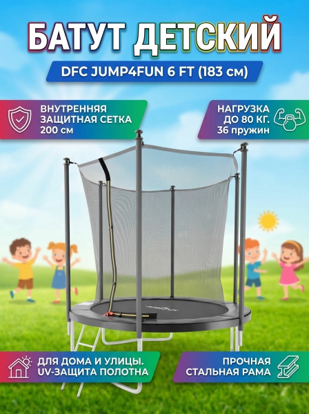 Батут с внутренней защитной сеткой DFC Trampoline STOCK 6 ft JUMP4FUN черный - Бренд