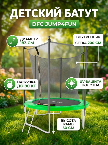 Батут с внутренней защитной сеткой DFC Trampoline STOCK 6 ft JUMP4FUN зеленый - Бренд