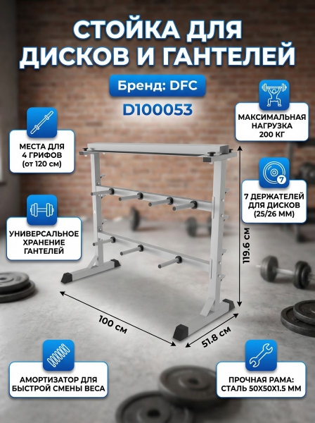 Стойка для хранения дисков 25/26 мм и гантелей DFC D100053 - Бренд