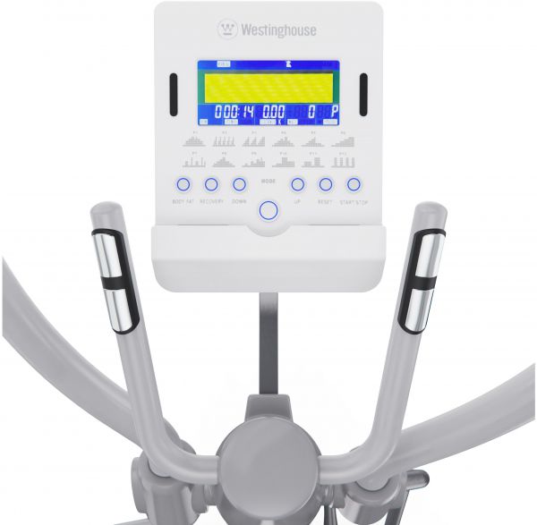 Все данные отображаются на LCD-дисплее, где вы можете отслеживать ключевые параметры: время, дистанцию, калории, скорость, пульс, мощность и темп. Для удобного отслеживания за состоянием организма во время тренировки на поручнях установлены сенсорные датчики пульса.