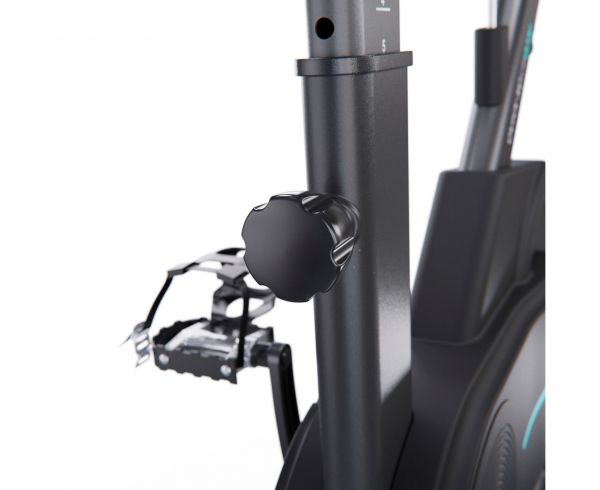 Велотренажёр выдерживает вес до 110 кг и подходит для пользователей ростом от 150 до 190 см. Инерционный вес маховика 15 кг гарантирует плавное движение и настройку степени нагрузки. Обернутый вокруг маховика ремень обеспечивает минимальный уровень шума, что делает тренажер кардио оптимальным вариантом для использования дома.