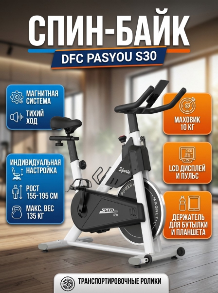 Спин-байк PASYOU S30 чёрно-белого цвета — это современный тренажер кардио, который идеально подойдёт для регулярных домашних тренировок. Благодаря своей универсальности и расширенной системе настроек, он эффективно заменит занятия в фитнес-зале.